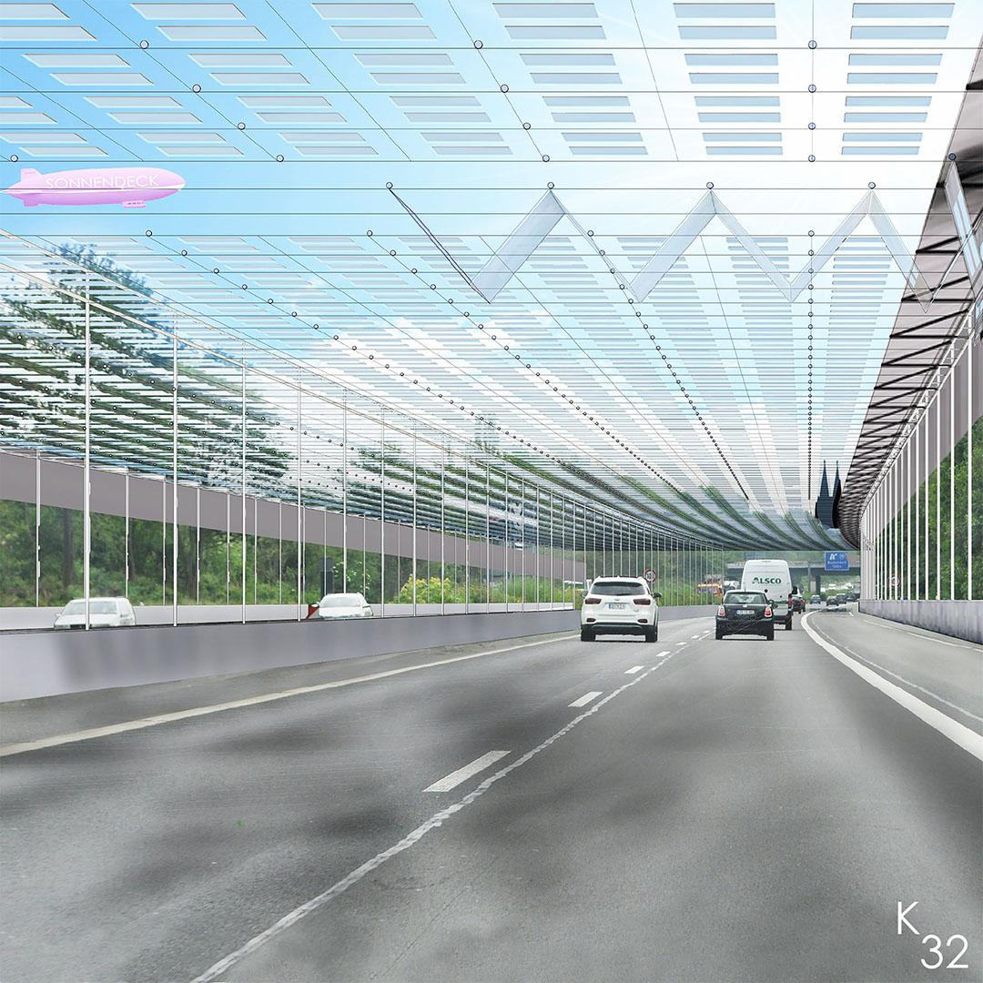 Ratsgruppe GUT eine Arbeitsgruppe aufgebaut, die die Idee einer feingliedrigen Seilnetzkonstruktion mit Photovoltaikelementen über Kölns Autobahnen entwickelt hat. Wir haben ausgearbeitet, wie sich das Bild der Kölner Autobahnen verändern könnte.